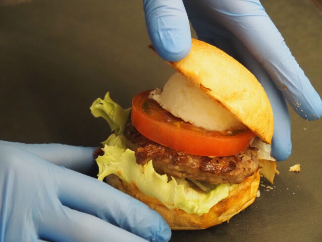 ハンバーガーは、オリジナルのバンズにしほろ牛100%のパテとホッカイコガネで作るマッシュポテトをサンドしています。お肉本来の美味しさを感じられるのが特徴です。