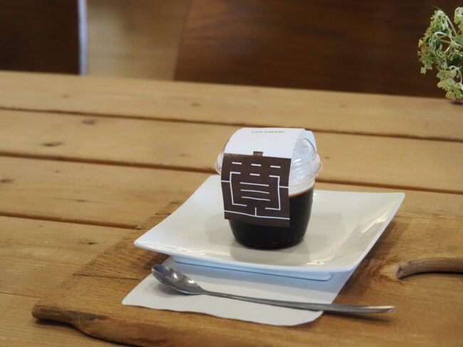 ブレンド珈琲で作られた「寛一珈琲ゼリー 380円」。