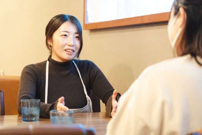 十勝出身の野澤さんは中学校・高校で不登校を経験。その後に士幌町の道の駅にてカフェやレストラン業務、ショップの販売業務など接客業のノウハウや販売を通して人に喜んでもらえる経験を積みました。
