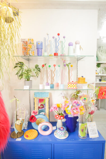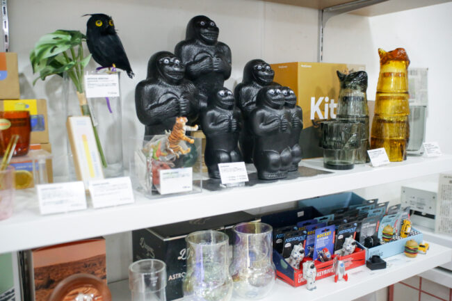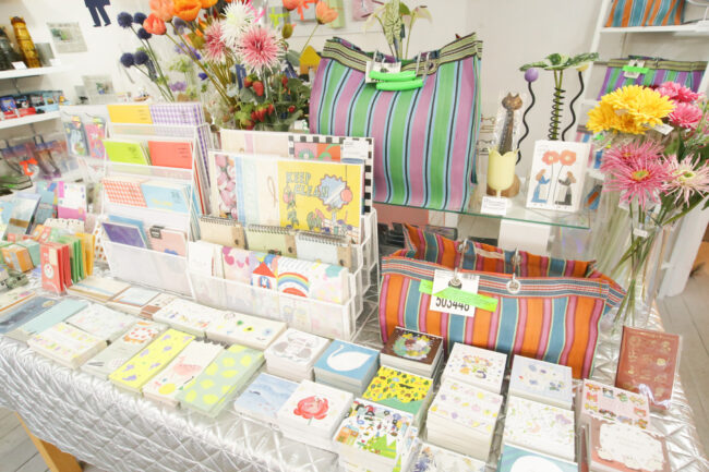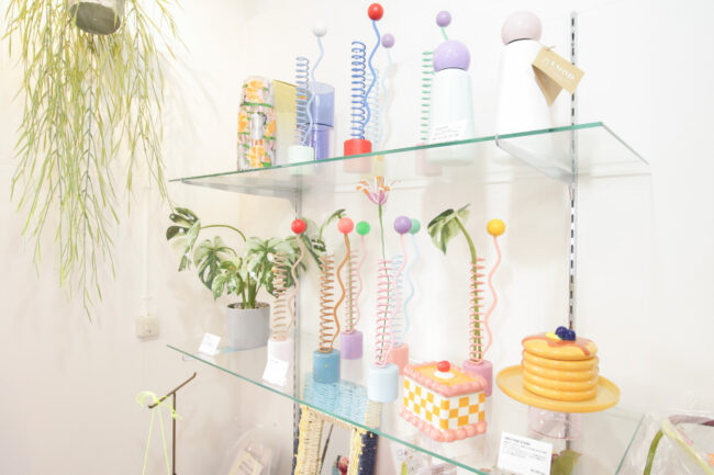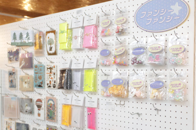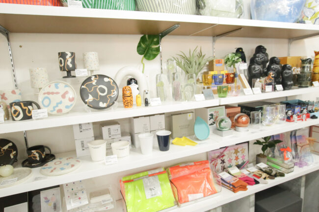 店内はキラキラとカラフルでPOPな空間が広がり、可愛い文房具や小物、目を引くインテリア雑貨がずらり。